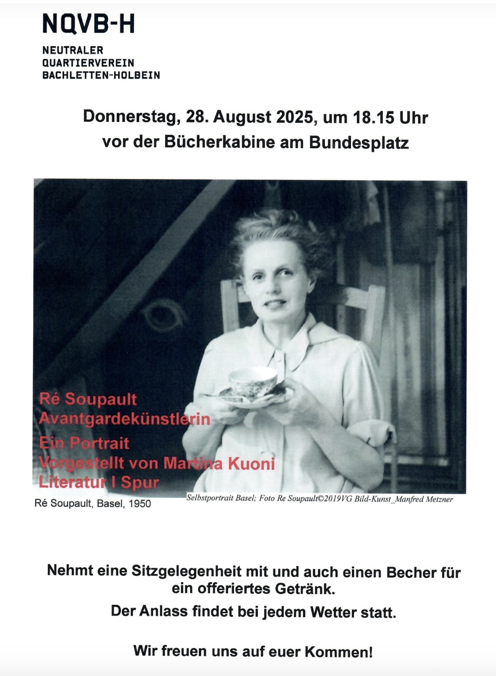 Donnerstag, 28. August 2025, 18.15 Uhr vor der Bücherkabine am Bundesplatz, Bachlettenquartier.